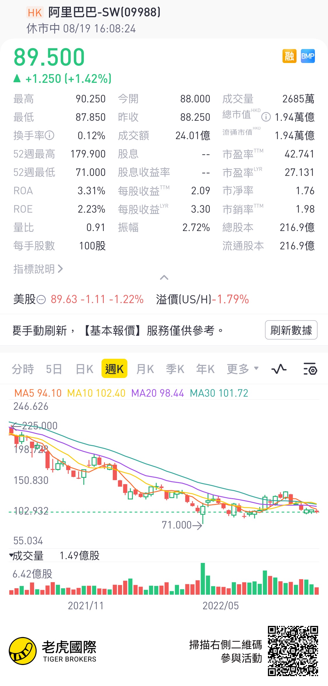 $阿里巴巴-SW(09988)$$150