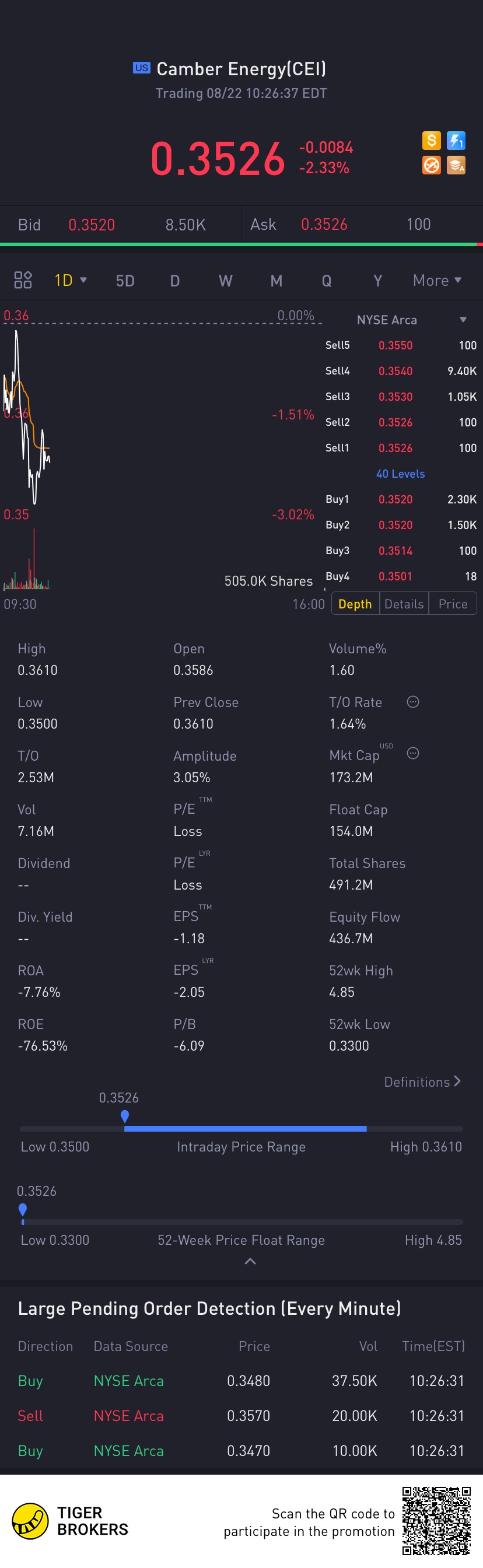 $Camber Energy(CEI)$up one day 14% ++ now drop back again. Really shit!