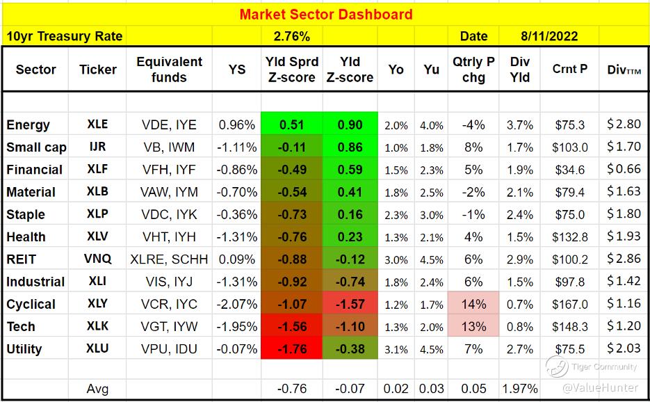 - The dashboard also shows that XLE is also attractively valued compared with other sectors. And next to the energy sector, small-caps are also at an attractive level currently, followed by the health sector.