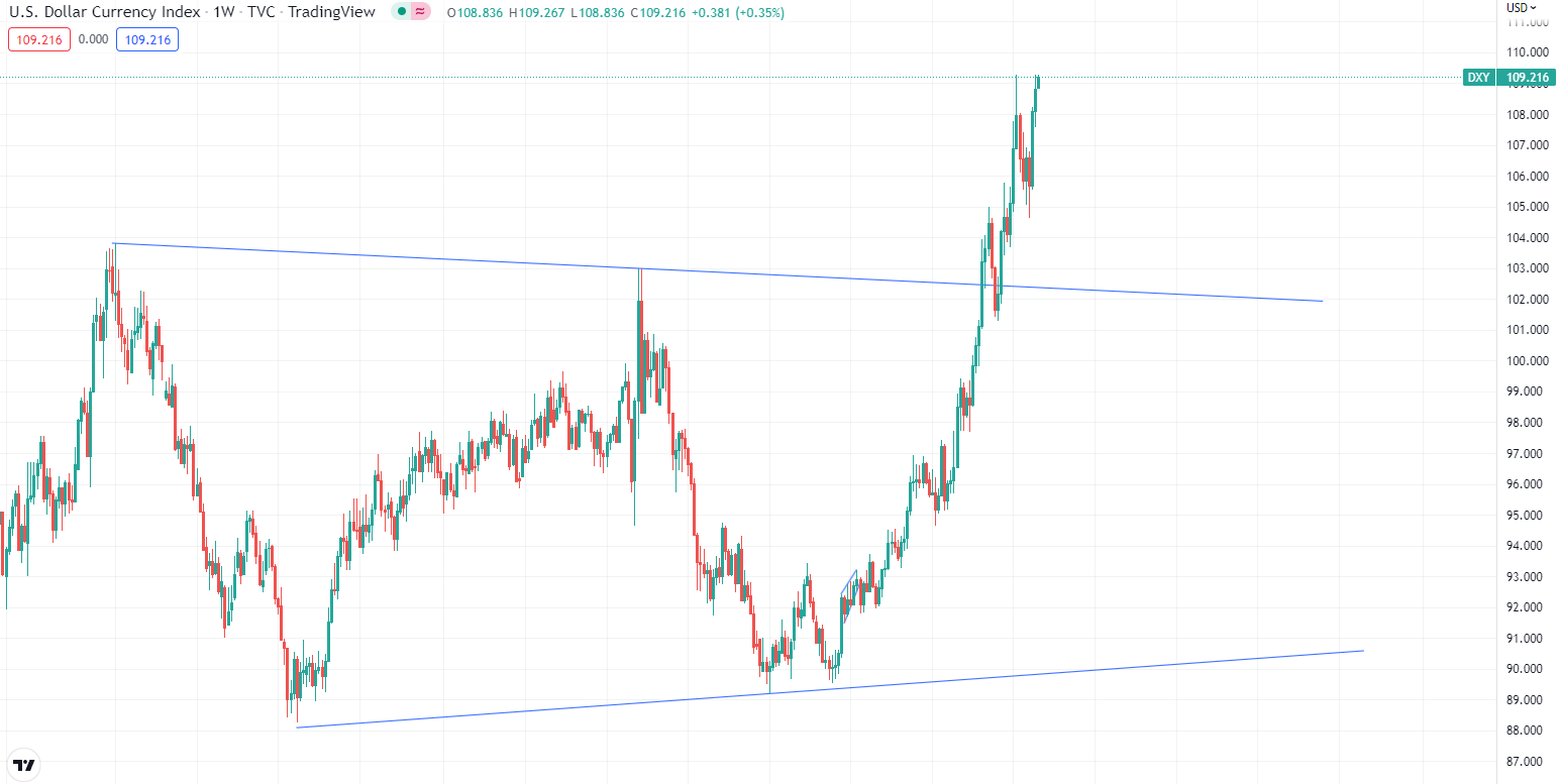 The story of a strong dollar continues. After a brief correction, the US dollar index has risen again in the past two weeks, only one step away from breaking through the previous high.