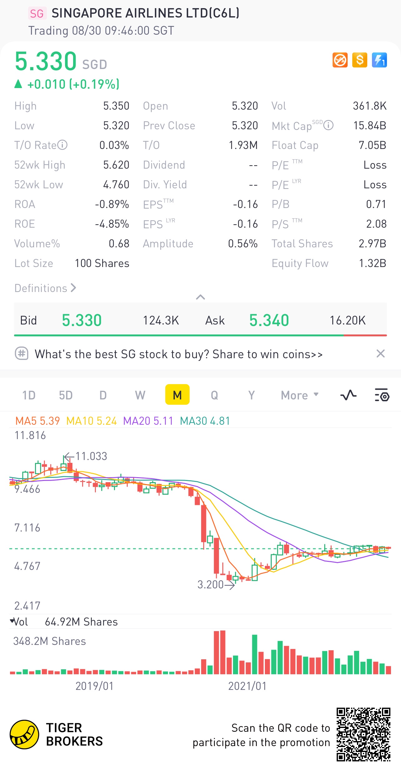 $SINGAPORE AIRLINES LTD(C6L.SI)$Starting to become a cut throat biz. Charging 10k for flight from SG to China. Ridiculous.