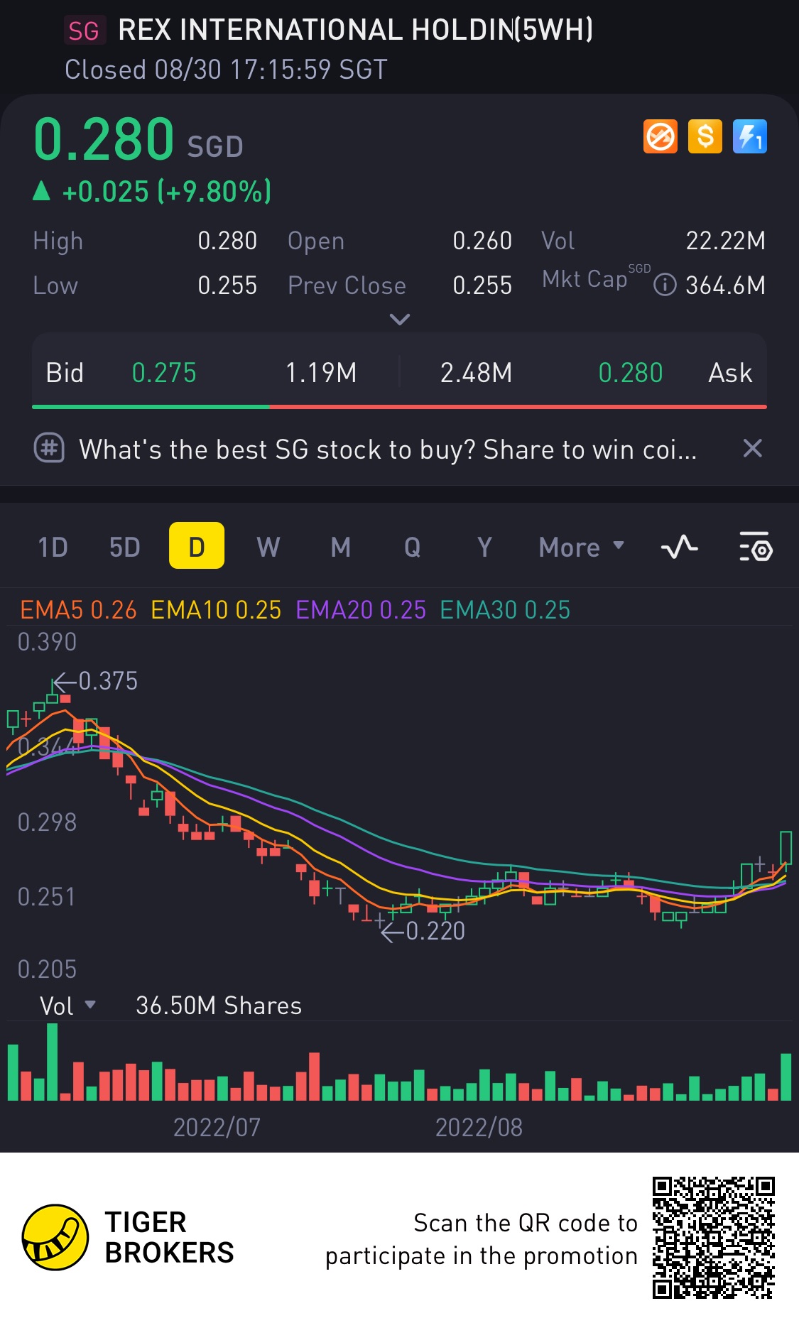 $REX INTERNATIONAL HOLDING LTD(5WH.SI)$❤️Uptrend