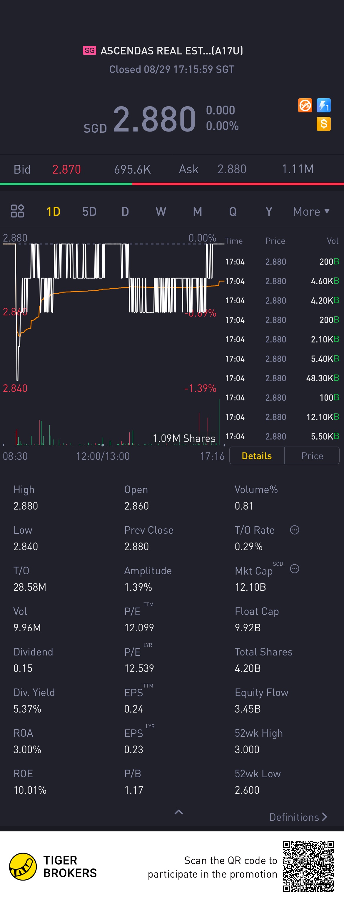 $ASCENDAS REAL ESTATE INV TRUST(A17U.SI)$.
