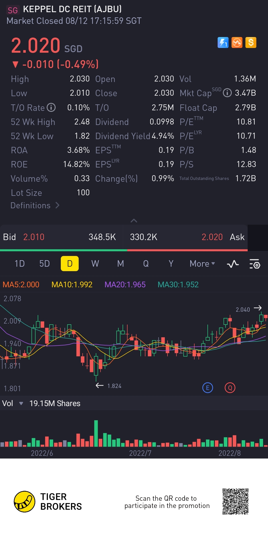 $KEPPEL DC REIT(AJBU.SI)$iif can stay above $2.05, there is hope to go higher.