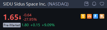 Sidus Space Inc. rose 9% in premarket trading on Wednesday after space and defense technology company Sidus Space aims to raise $25 million in a public offering. Sidus Space announced Monday it plans to sell 19,230,800 shares at $1.30 per share in an offering expected to close on Dec. 24.