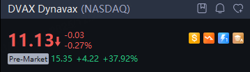 Dynavax rose 38% in premarket trading on Wednesday after French pharmaceutical giant Sanofi said it plans to acquire Dynavax for $15.50 per share in cash, valuing the vaccines company at about $2.2 billion, according to a statement released Wednesday.