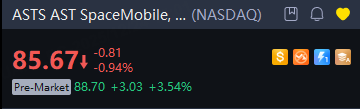AST SpaceMobile, Inc. rose 4% in premarket trading on Wednesday.