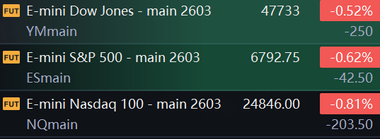 As of Mar 6, U.S. stock index futures performed as follows: Dow Jones futures edged 0.52% lower as investors weighed energy price spikes and chip volatility, while S&P 500 futures fell 0.62%, reflecting broad caution. Nasdaq 100 futures fell 0.8%, pressured by mega-cap tech and semiconductor weakness amid shifting AI spending expectations and geopolitical headlines. Overall, risk appetite softened as traders positioned for near-term catalysts in energy, chips, and policy.
