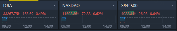 U.S. stocks turned down after Powell's speech began. DJIA slid 0.49%, NASDAQ fell 0.62% while S&P 500 slipped 0.64%.