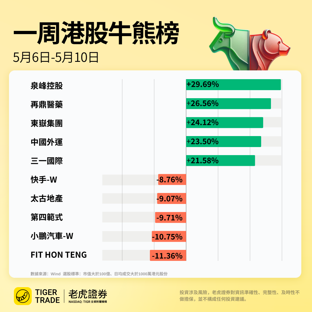 本週港股牛熊榜 | 不要忽視業績股!泉峰控股升近30%、再鼎醫藥升26%;中國外運升23%,航運股盈利有望修復