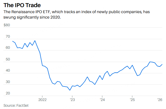 IPO watchers see even better times in 2026. “Now, with more stable ground underfoot and a backlog brimming with the next wave of innovators, we’re optimistic that the IPO market will resume its long-awaited pickup in 2026,” Renaissance analysts say. The firm estimates that 200 to 230 companies could go public this year, potentially raising $40 billion to $60 billion.