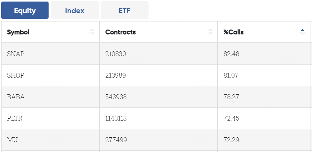 Special %Calls >70%: Snap; Shopify; Alibaba; Palantir; Micron Technology