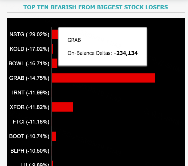 A total number of 234,134 options related to Grab was traded. Sea's net imbalance totalled up to -234,134, implying the highest volume of bearish activity from the biggest stock losers by option delta volume, which converts option volume to an equivalent stock volume (bought or sold).