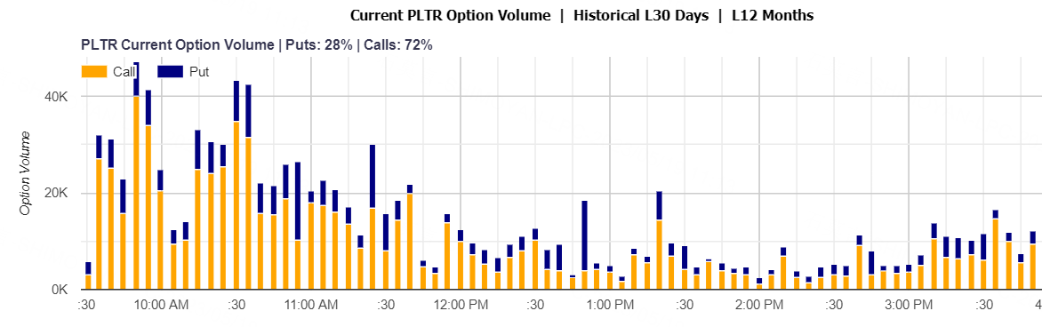 A total number of 1,140,923 options related to Palantir was traded, of which call options accounted for 72%.