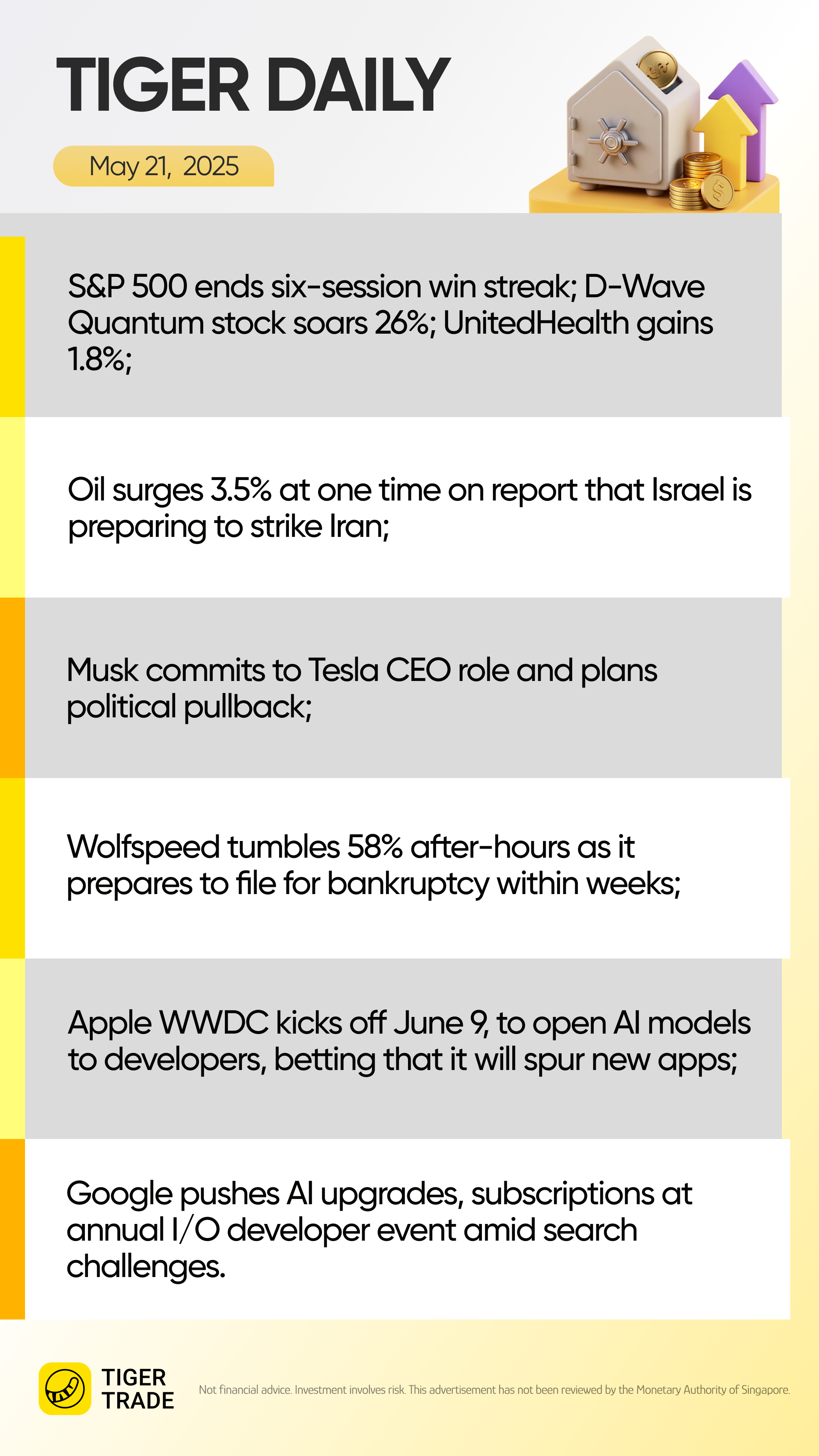 Tesla was up 0.5% after CEO Elon Musk told a conference in Qatar that he expects to still be chief executive in five years, The Wall Street Journal reported. Tesla shares have declined 15% this year but have jumped about 44% since the company reported first-quarter earnings on April 22. Tesla sold 11,150 cars in China the past week, according to industry data tracked by Citi analyst Jeff Chung, up from 3,040 sold the week before. But that is down about 16% from the comparable week in 2024.