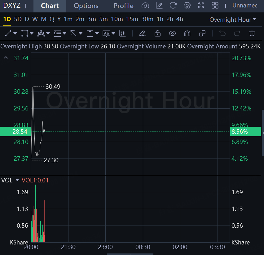 SpaceX is planning a secondary share sale that would value it at $800 billion, the Wall Street Journal reported on Friday, citing people familiar with the matter. SpaceX was valued at about $400 billion after its last share sale. DXYZ jumped 8% on the news in overnight trading.