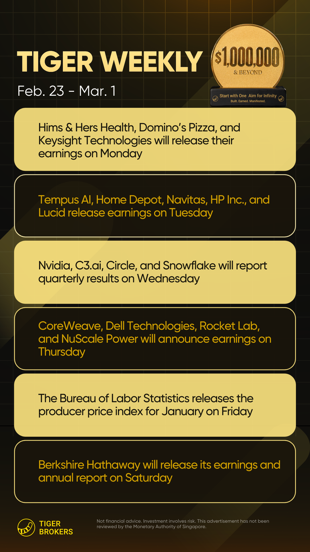 Constellation Energy and Home Depot will release their earnings on Tuesday, followed by Lowe’s, Nvidia (the aforementioned most valuable company), and Salesforce on Wednesday. Thursday will bring results from Dell Technologies, Intuit, Vistra, and Warner Bros. Discovery. Berkshire Hathaway will release its earnings and annual report on Saturday, the first time it is doing so under CEO Greg Abel, who succeeded Warren Buffett at the beginning of the year.