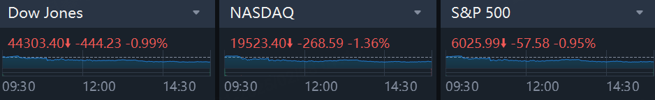 The S&P 500 .SPX lost 57.63 points, or 0.95%, to end at 6,025.94 points, while the Nasdaq Composite .IXIC lost 267.52 points, or 1.35%, to 19,524.47. The Dow Jones Industrial Average .DJI fell 441.28 points, or 0.99%, to 44,306.35.