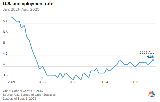 Nonfarm payrolls increased by just 22,000 for the month, while the unemployment rate rose to 4.3%, according to a Bureau of Labor Statistics report Friday. Economists surveyed by Dow Jones had been looking for payrolls to rise by 75,000.