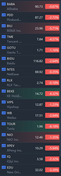 Hot Chinese ADRs Turned Down in Morning Trading; Tuniu Slid Over 8% While Bilibili Slid Over 5%.