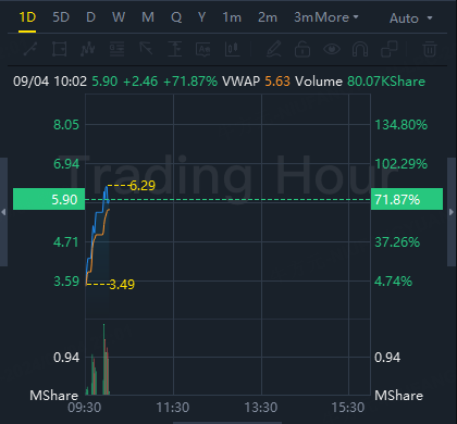 U.S.-listed shares of the company rose 72% in Wednesday trading.