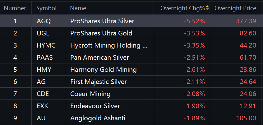 24H | Precious Metal Shares & ETFs Fall With AGQ down 5%, UGL down 3%; Crypto Shares Sink With RIOT, BitMine, CleanSpark down over 3%