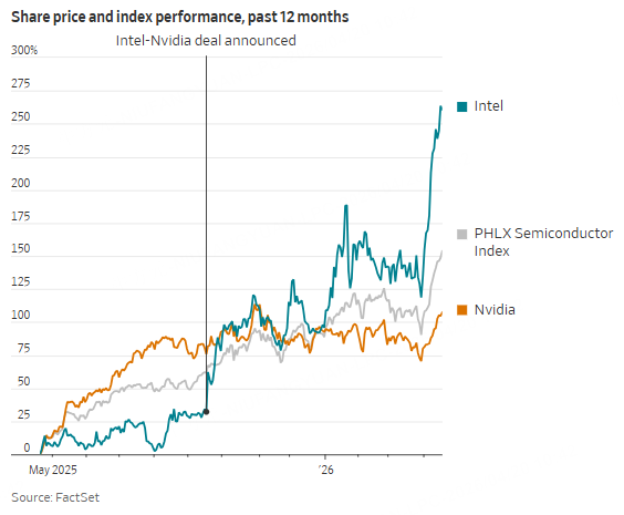 All these are still works in progress, though some notable progress has been made. Intel struck a deal in September with Nvidia to co-develop a new class of chips for data centers and laptops. That deal kicked off the stock’s recent run, but developments since then have given the shares even more juice. Even social-media posts by President Trump have made an impact; Intel’s stock jumped 11% in one day in early January after Trump praised Intel Chief Executive Lip-Bu Tan and said the U.S. government “is proud to be a shareholder of Intel” on his Truth Social network.