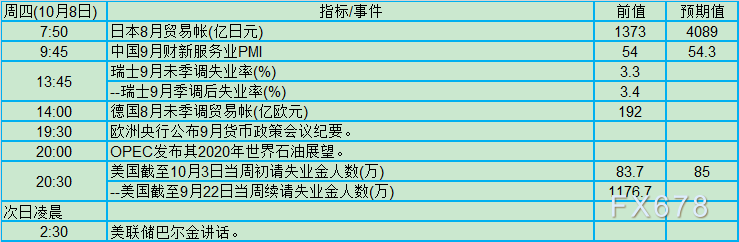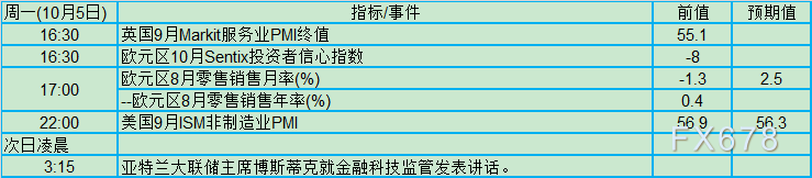 欧英未来关系第九轮谈判在布鲁塞尔结束,双方之间的共识和分歧仍旧明显。美国大选前景因总统特朗普感染新冠而变得更具不确定性。这些都会继续成为市场关注的热点。