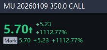 There are 604.31K Micron option contracts traded on Tuesday, up 90% from the previous trading day. Call options account for 60% of overall option trades. Particularly high volume was seen for the $350 strike call option expiring January 9, 2026, with 23,783 contracts trading. $MU 20260109 350.0 CALL$