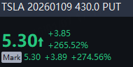 There are 2.46M Tesla option contracts traded on Tuesday, up 39% from the previous trading day. Call options account for 56% of overall option trades. Particularly high volume was seen for the $430 strike put option expiring January 9, 2026, with 91,623 contracts trading. $TSLA 20260109 430.0 PUT$