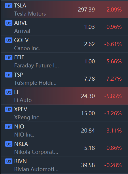 EV Stocks Slumped in Morning Trading