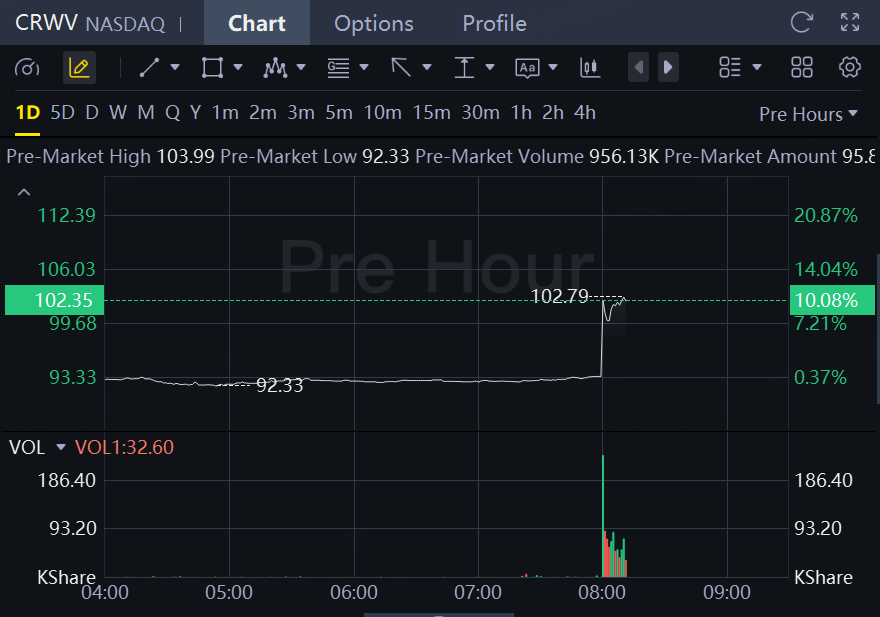 Shares of CoreWeave jumped more than 10% in premarket trading.
