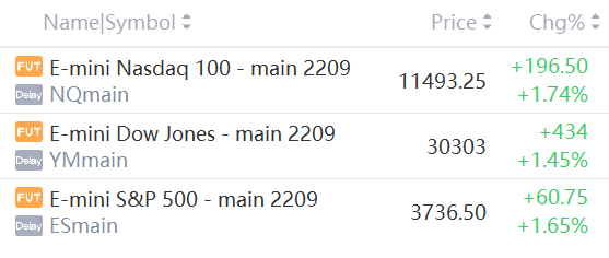 S&P 500 futures rose 1.65%; Nasdaq 100 futures rose 1.74%; Dow futures rose 1.45%.