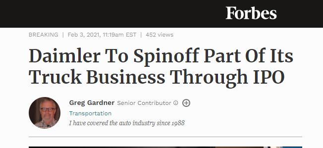 福布斯 | 将剥离卡车业务 并计划年底前将其单独上市