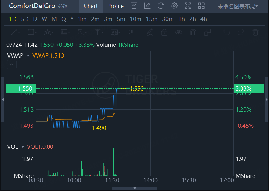 ComfortDelGro jumps 3.33% at 11:42 am, July 24th.
