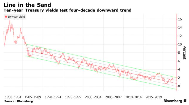 本周,美债市场创纪录的抛售,推动美债收益率突破了一个可能标志着数十年牛市结束的关口。