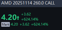 A total number of 1.54M options related to Advanced Micro Devices were traded on Wednesday, up 137% from the previous trading day, of which call options accounted for 60%. Particularly high volume was seen for the $260 strike call option expiring Nov. 14, with 112,044 contracts trading. $AMD 20251114 260.0 CALL$
