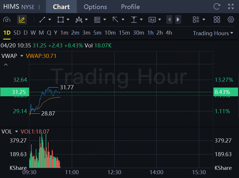 Hims & Hers Health stock soared 8.43% on Monday, extending a multi-day rally.