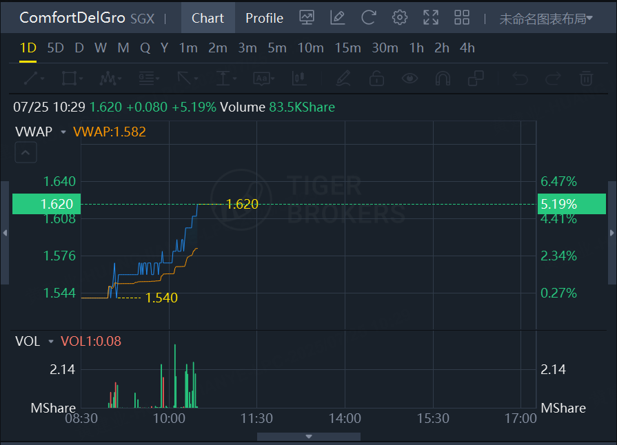 ComfortDelGro soars 5.19% at 10:29 am, July 25th.