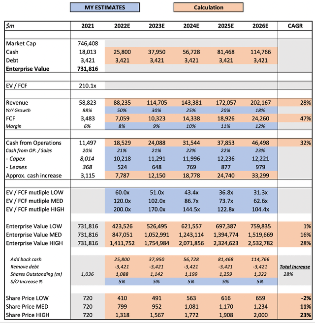 Basically, I think shares are reasonably priced, particularly if you believe that Tesla can achieve a revenue CAGR of over 28% through to 2026 (spoiler alert - I do).