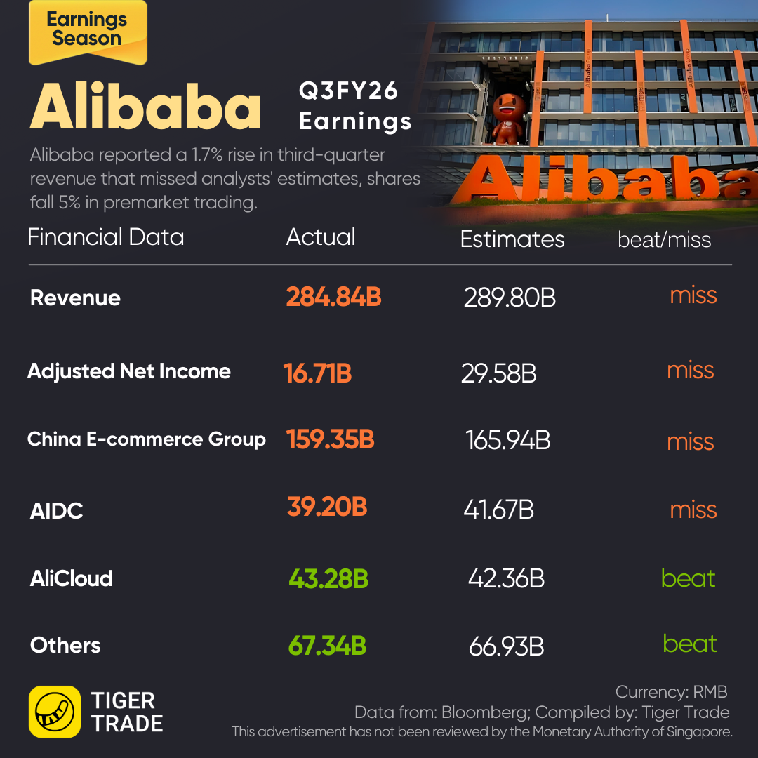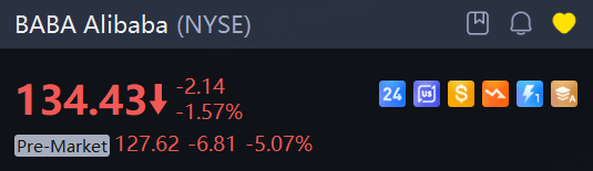 Alibaba's U.S.-listed shares fell more than 5% in premarket trading.