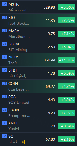 Crypto stocks gained in morning trading, Marathon Digital Holdings and Riot Blockchain jumped over 7%.