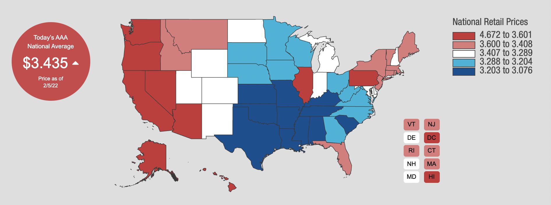 尽管拜登总统正努力抑制油价上涨,但当地时间2月5日,根据美国汽车协会(AAA)最新的燃料数据,美国加油站的平均汽油价格已经上涨至3.435美元/加仑,这是美国自2014年9月以来的最高水平。