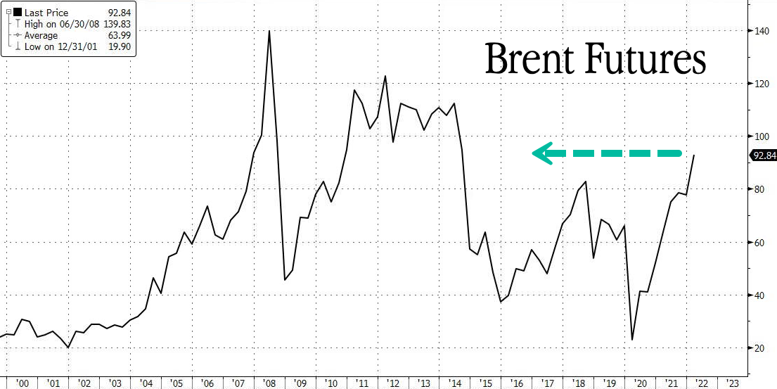 乌克兰问题也导致地缘政治风险溢价上升,并将布伦特原油价格推高至超过92美元/桶。