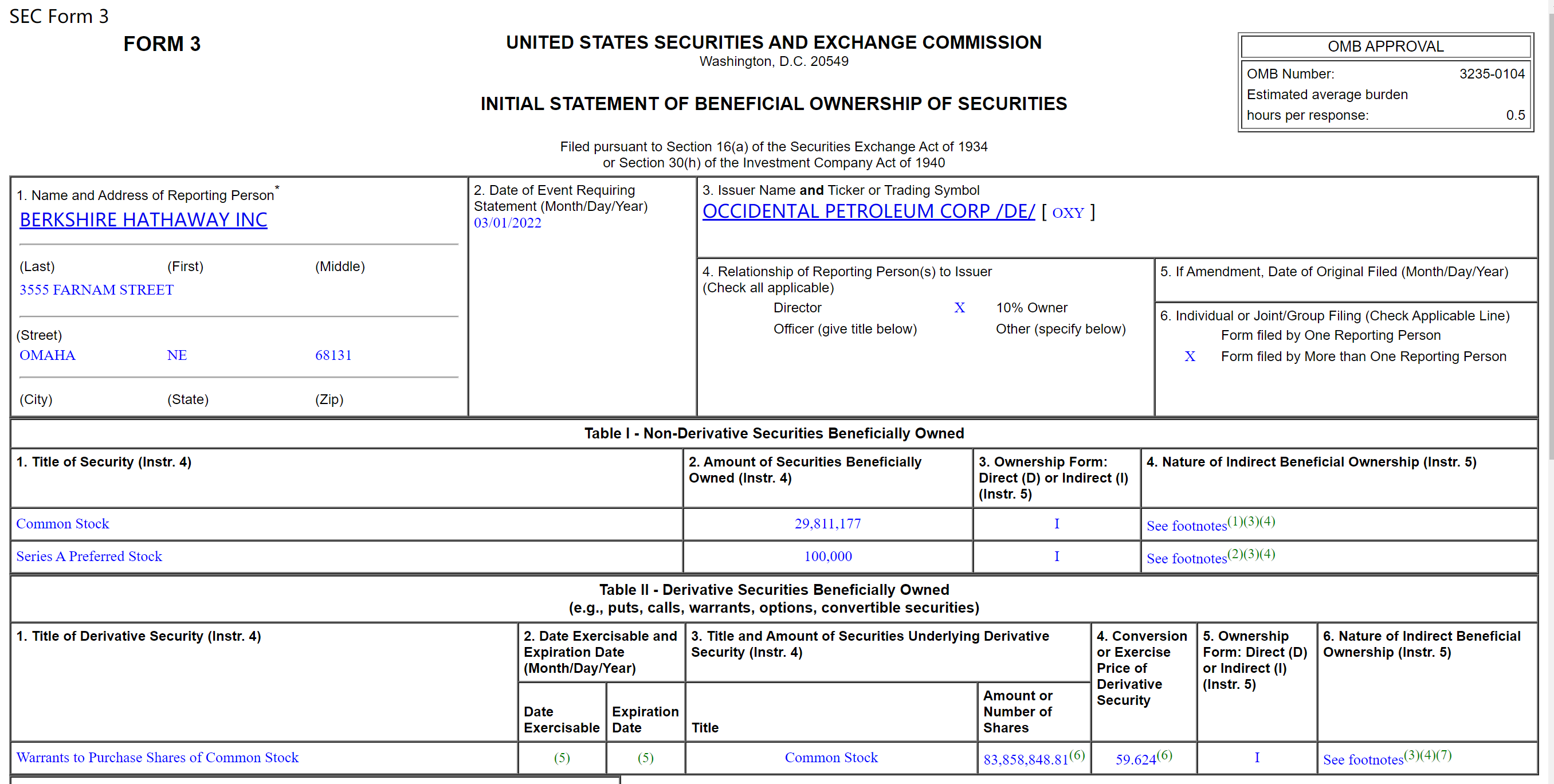 目前其投资组合中超过6100万股股票是在周三,周四和周五购买的,价格从47.07美元到56.45美元不等。但根据伯克希尔哈撒韦最新的13F文件,截至2021年12月31日,该公司没有持有西方石油公司的股票。