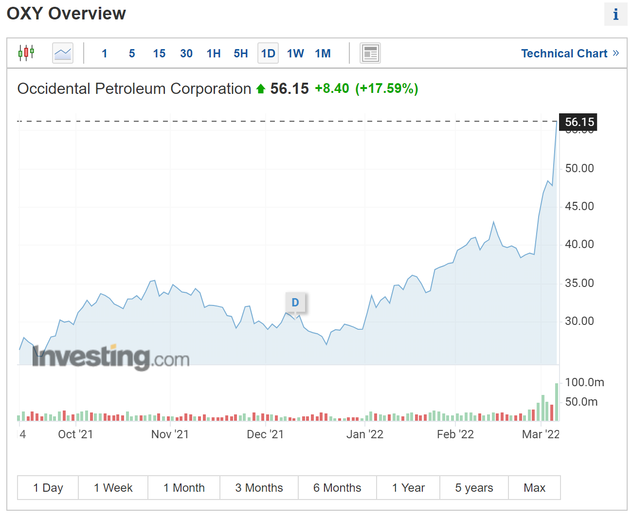 在伯克希尔哈撒韦持有的1.13亿股中,仅有2900多万股为普通股,剩余8300多万股以认股权证形式存在,执行价格为59.624美元。本周五,西方石油公司上涨18%,本周上涨45%,收盘价为56.15美元。