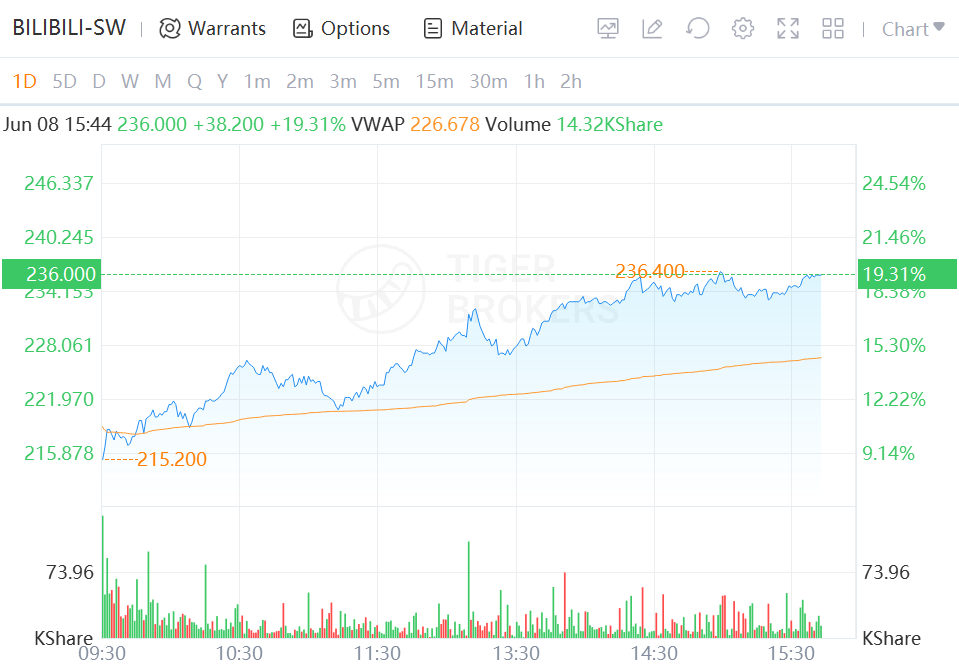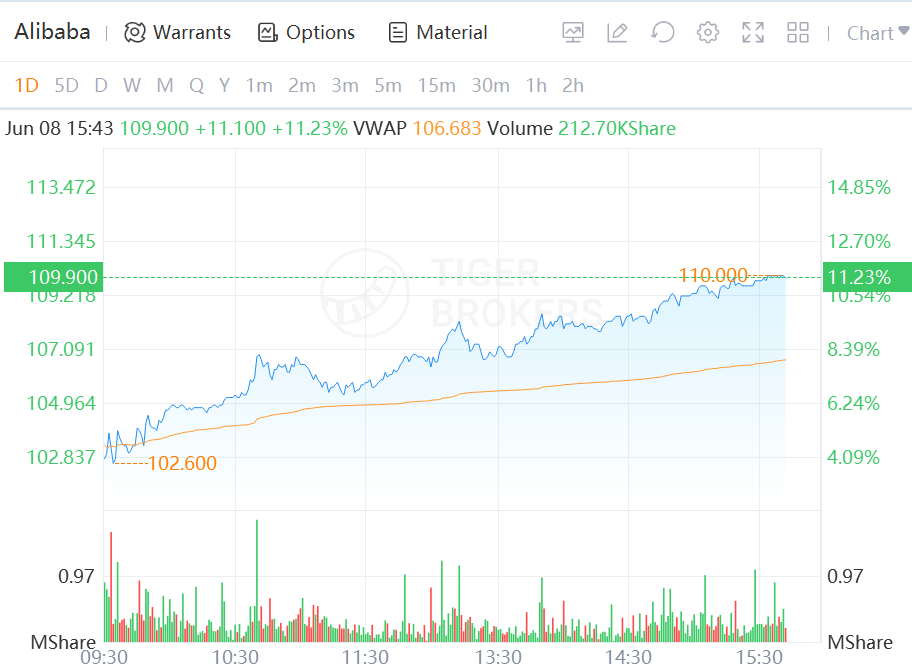 Hong Kong shares of Alibaba jump 11.23% to HK$109.90, highest since April. Bilibili stock surges 19%. Shares of Tencent Holdings jump 6% to HK$389.60, their highest since April.