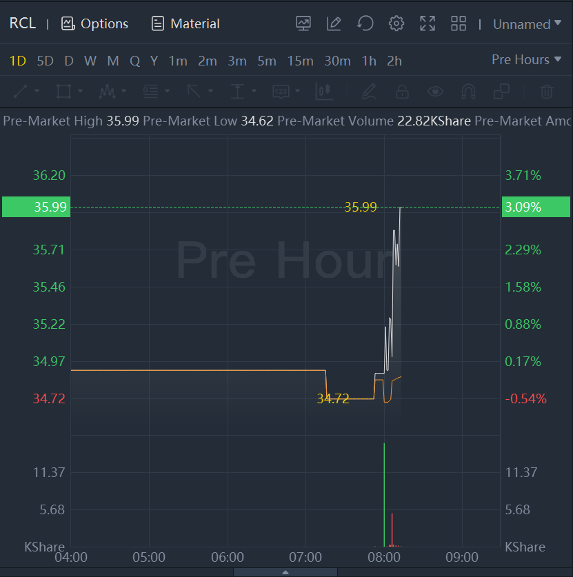 Royal Caribbean shares jumped 3% after posting financial results.