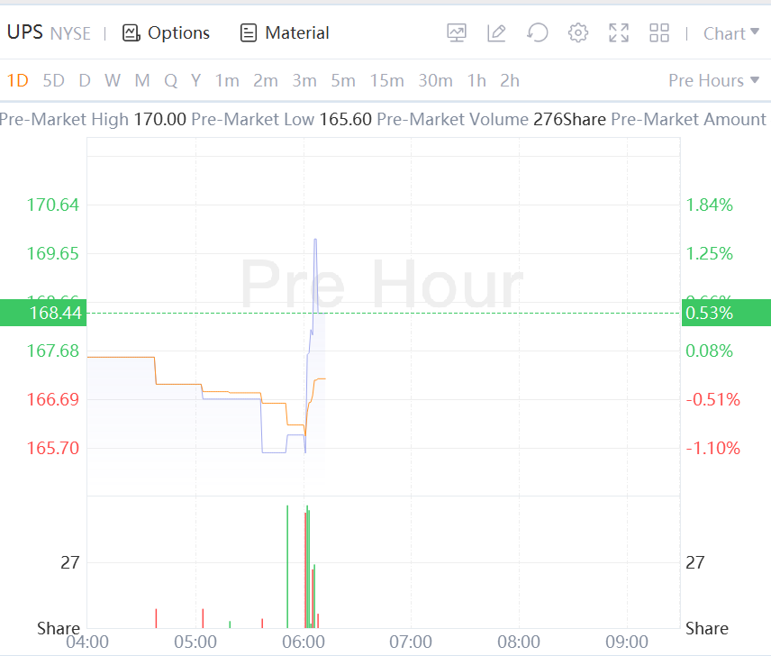 Shares of United Parcel Service Inc rose 0.53% in premarket trading.
