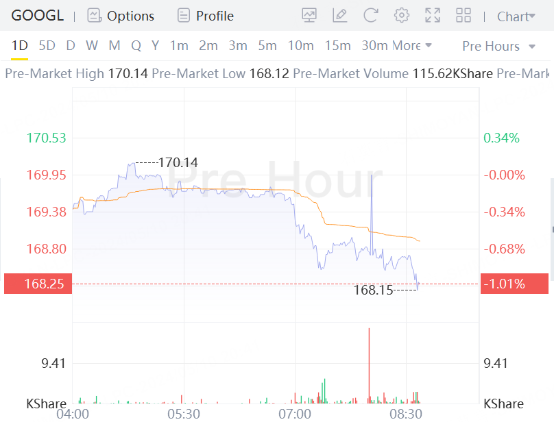 Alphabet stock was down 1% in premarket trading. S&P 500 futures were up 0.3%.